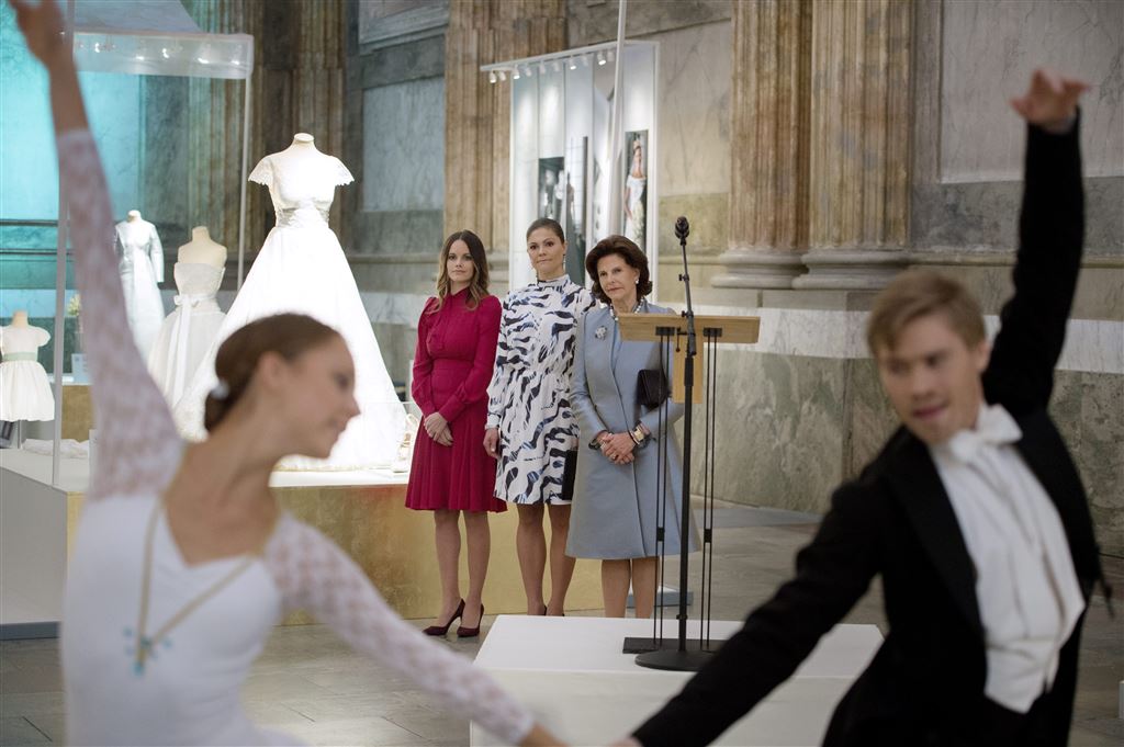 Koningin Silvia, kroonprinses Victoria en prinses Sofia waren wel van de partij. Silvia sprak liefdevol over haar dochters en schoondochter. “Deze jurken zijn deel van de geschiedenis van het Zweedse koninklijk huis. Maar voor mij symboliseren ze ook belangrijke mijlpalen van onze familie”, sprak de koningin. Ze vond het dan ook ‘heel bijzonder’ de tentoonstelling te mogen openen met haar dochter en schoondochter.