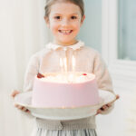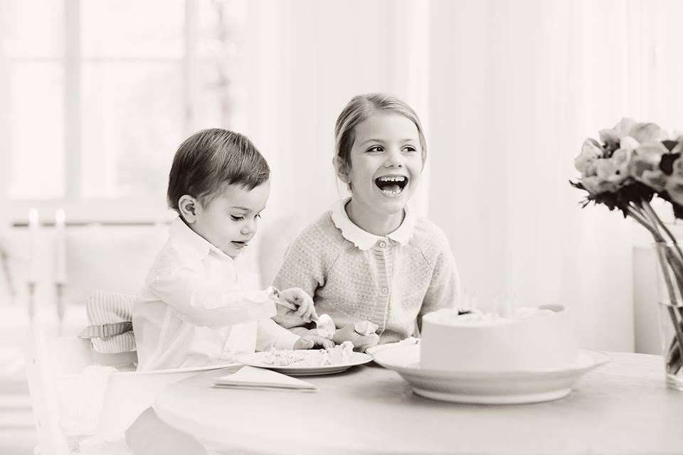 Op een van de foto’s zit Estelle samen met haar broertje, prins Oscar, aan tafel achter een grote verjaardagstaart. Op de andere twee beelden poseert het Zweedse prinsesje in een lichtgrijs rokje met roze vestje.