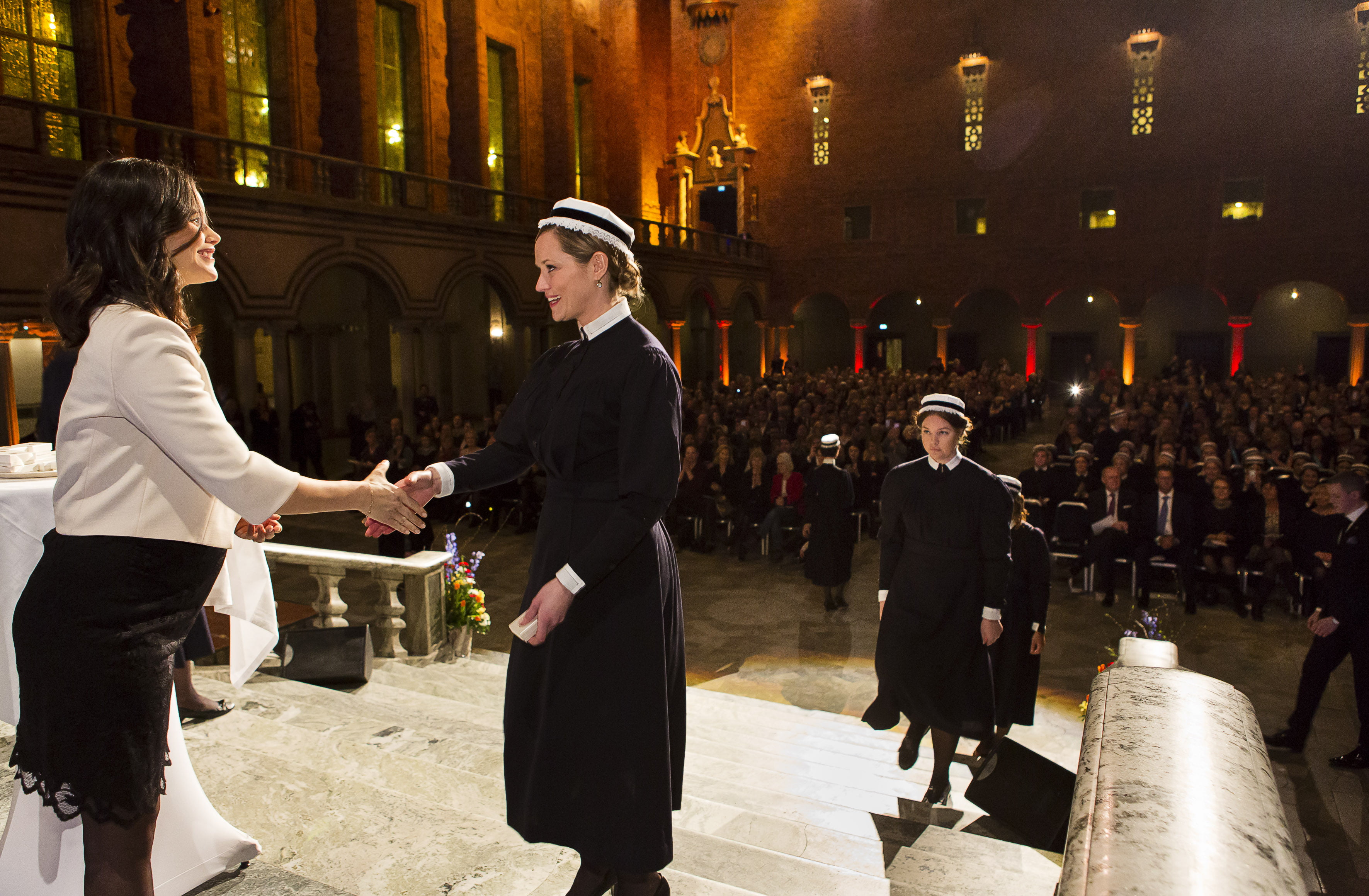 STOCKHOLM – De Zweedse prinses Sofia heeft haar eerste openbare optreden als erevoorzitter van Sophiahemmet achter de rug. Ze was donderdag aanwezig bij de diploma-uitreiking van een nieuwe lichting verpleegsters en mocht de daarbij behorende broches uitdelen. De ceremonie vond plaats in het stadhuis van Stockholm.