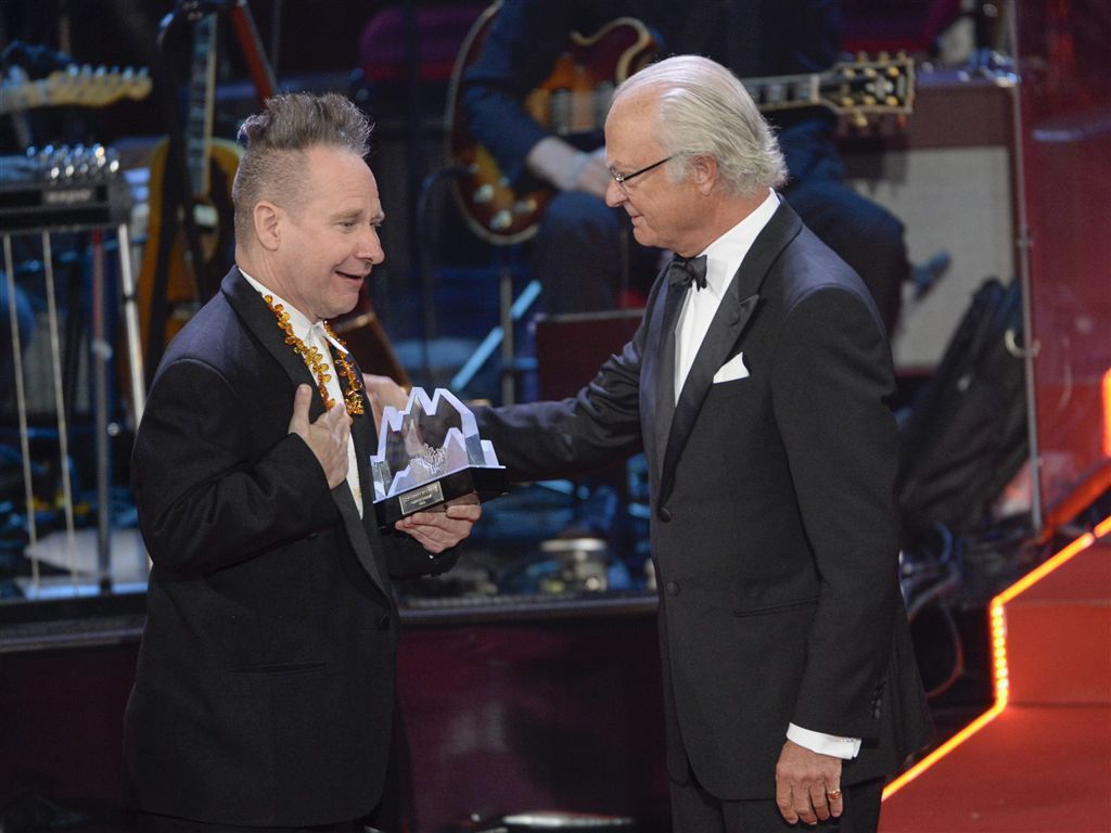 Koning Carl Gustaf, die de prijzen uitreikte, kroonprinses Victoria, prins Daniel en Madeleine’s echtgenoot Chris O’Neill waren wel in het Concertgebouw. Chuck Berry (87) was er zelf overigens niet. Hij was te ziek om naar Zweden te komen.