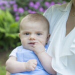 Op één van de foto’s zit de inmiddels vier maanden oude Oscar op schoot bij zijn oudere zus. Estelle is voor de gelegenheid gekleed in de traditionele Zweedse klederdracht.