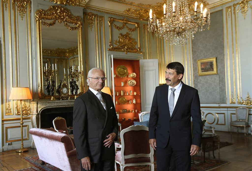 De Zweedse koning Carl Gustaf heeft de deuren van zijn paleis geopend voor de Hongaarse president János Áder. Áder brengt deze dagen een officieel bezoek aan Zweden.