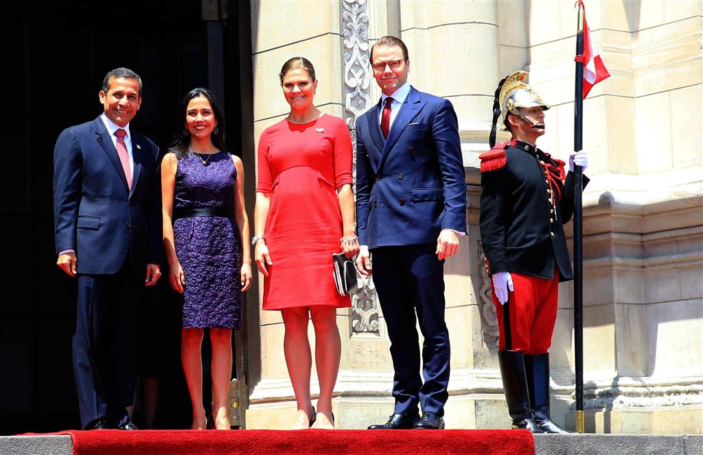 LIMA – De Zweedse kroonprinses Victoria is in Lima begonnen aan haar bezoek aan Peru. De zwangere prinses en haar echtgenoot Daniel kwamen maandag aan in de hoofdstad voor een meerdaags bezoek. Hier ontmoetten zij de Peruaanse president Ollanta Humala en diens echtgenote Nadine Heredia.