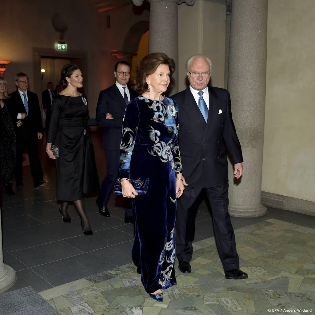 De Zweedse koning Carl Gustaf, koningin Silvia en kroonprinses Victoria en haar man prins Daniel hebben in Stockholm de ceremonie bijgewoond voor de uitreiking van de Nobelprijzen. Vanwege de coronapandemie waren de winnaars van dit jaar niet aanwezig.