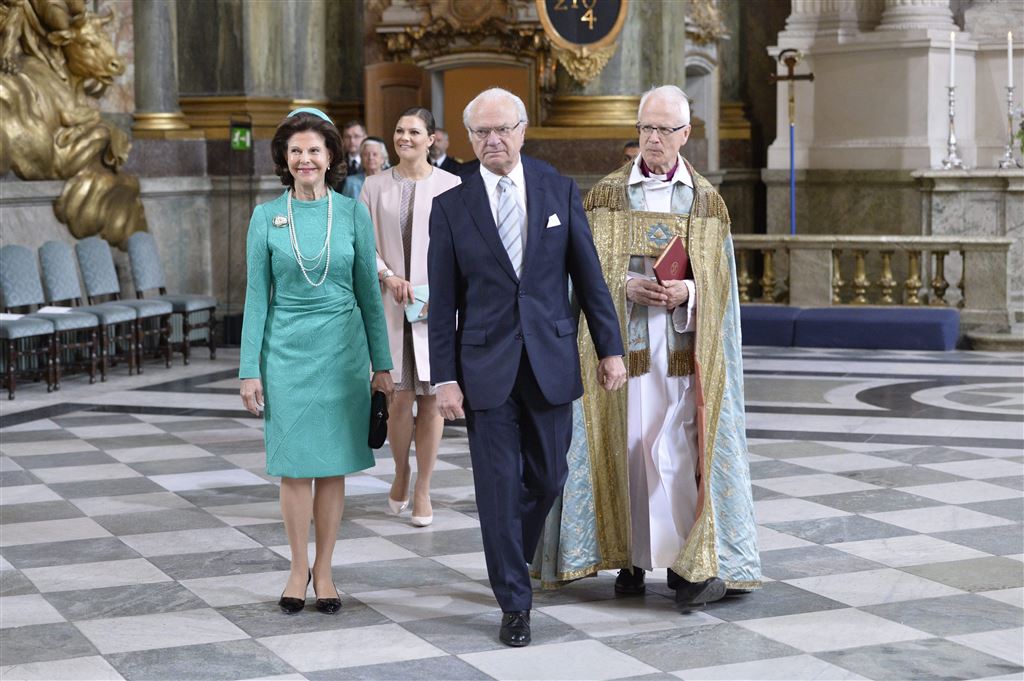 Koning Carl Gustaf, zijn vrouw koningin Silvia, kroonprinses Victoria, prins Daniel en de kersverse vader Christopher O’Neill waren bij de dankdienst aanwezig. De net bevallen prinses Madeleine was er niet bij. Bij de dienst waren naast de royals ook vertegenwoordigers van de regering en het parlement aanwezig.