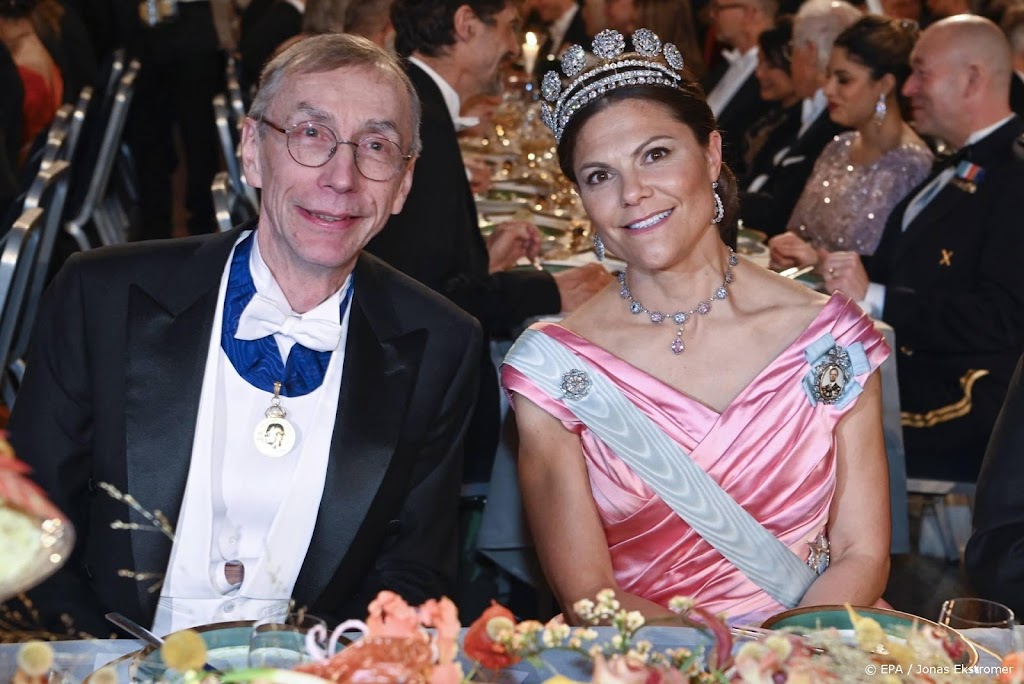 Victoria dineerde met Svante Pääbo aan haar zijde. Deze evolutieonderzoeker kreeg de Nobelprijs voor Geneeskunde voor zijn onderzoek naar de menselijke evolutie en naar het genetisch materiaal van uitgestorven mensachtigen.