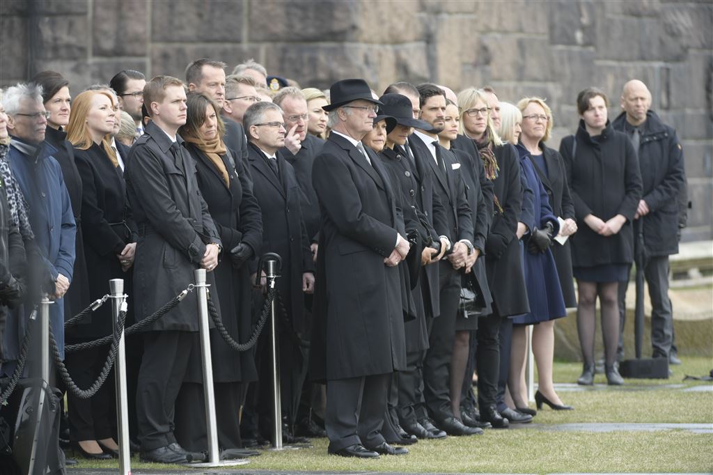 Na de minuut stilte gingen de royals naar een aangrenzend park. Hier hield premier Stefan Löfve aansluitend een toespraak tijdens een herdenkingsdienst.