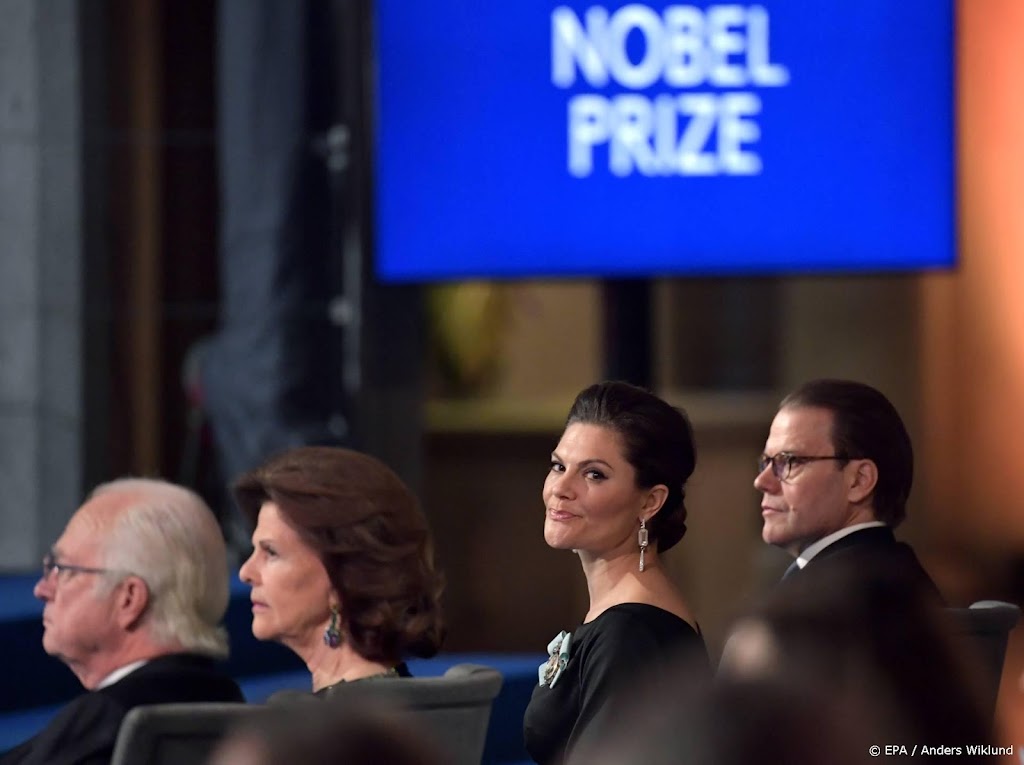 Het Zweedse koningspaar heeft dinsdag een presentatie bijgewoond over de winnaars van de Nobelprijzen van dit jaar. Ook kroonprinses Victoria en haar man prins Daniel en prins Carl Philip en zijn vrouw prinses Sofia waren erbij aanwezig.