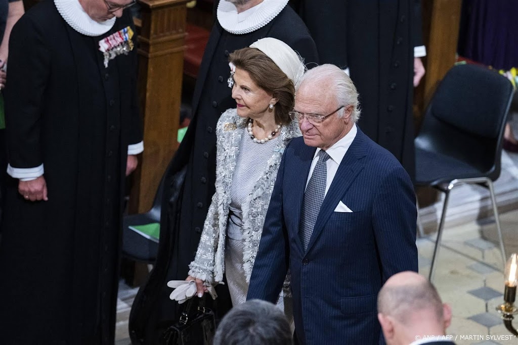 Koning Carl Gustaf en koningin Silvia van Zweden hebben zondag een hoogmis bijgewoond in de kathedraal van Uppsala, waar twee nieuwe bisschoppen werden gewijd. Op Instagram deelt het hof enkele beelden van de ceremonie.
