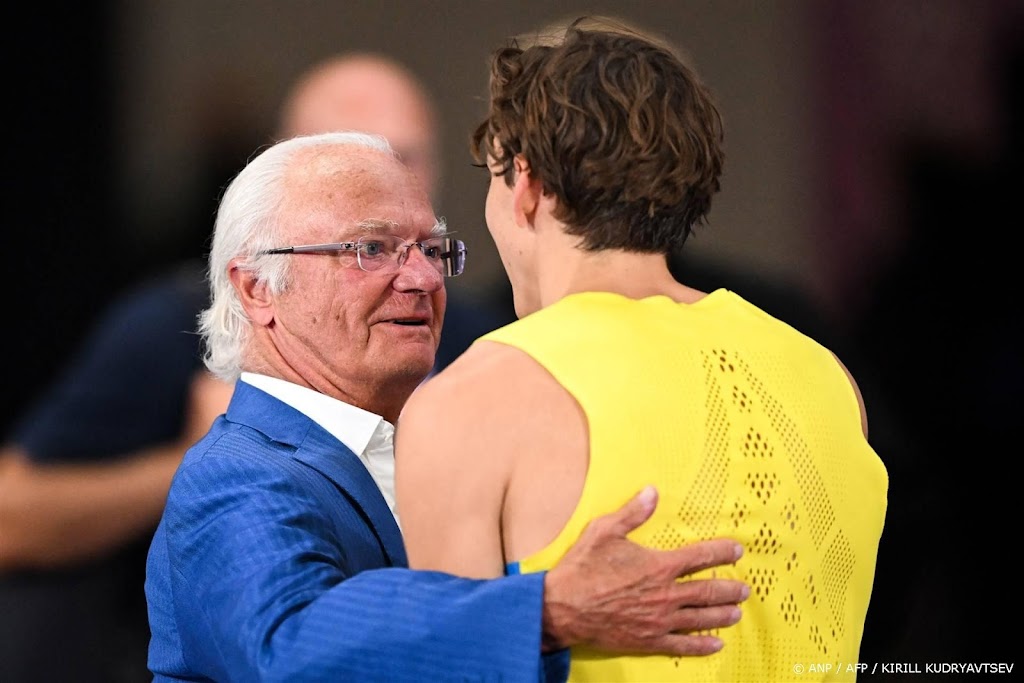 Het koningspaar feliciteerde Duplantis na afloop persoonlijk. De koning omhelsde hem.