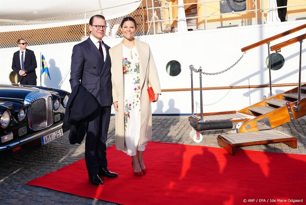Op de foto is te zien hoe Victoria en Daniel net het vliegtuig uit zijn gestapt. De Noorse krant schrijft dat ook prins Carl Philip en zijn vrouw prinses Sofia erbij zijn.